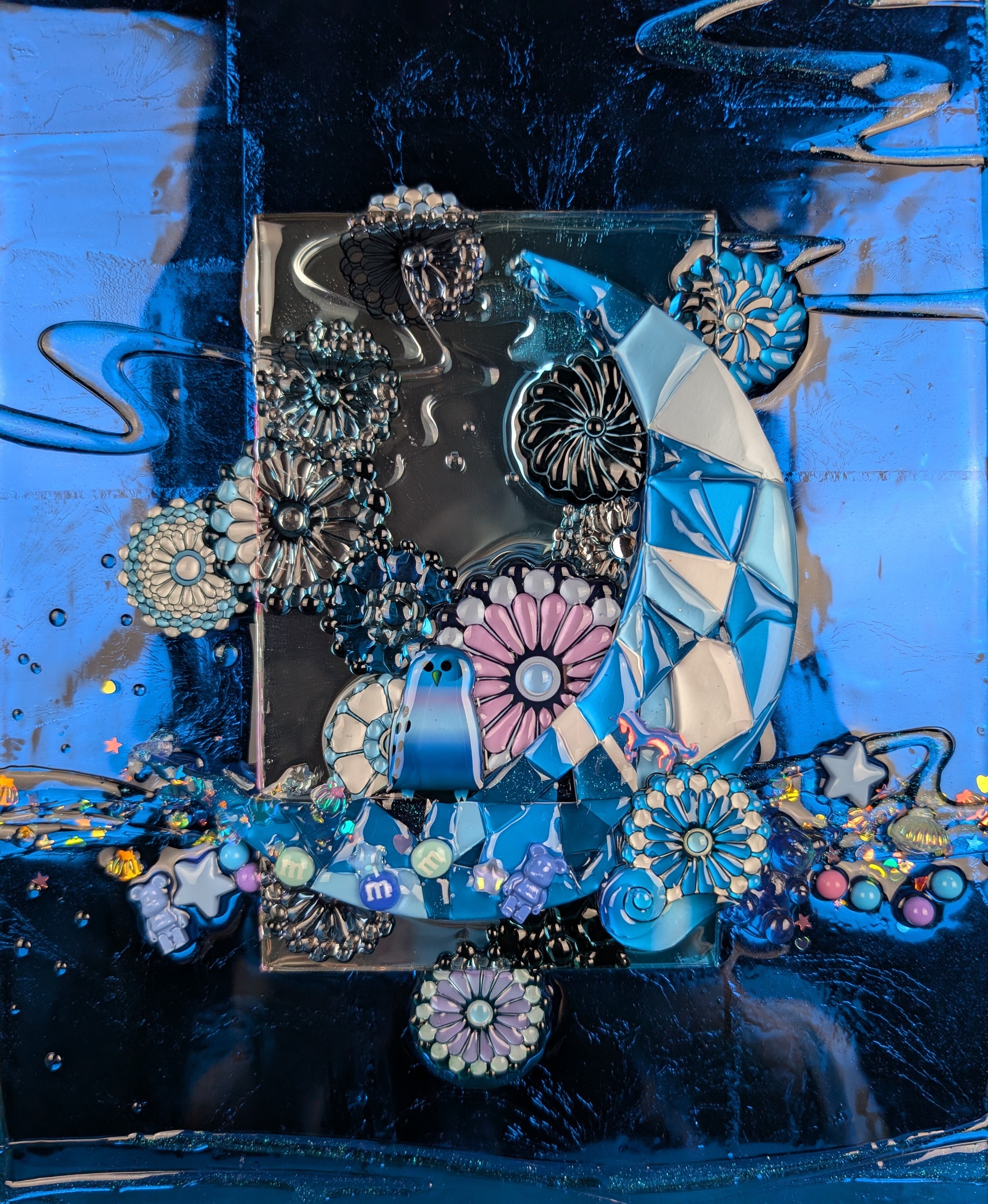 My Favorite Blue Owl on Crescent Moon